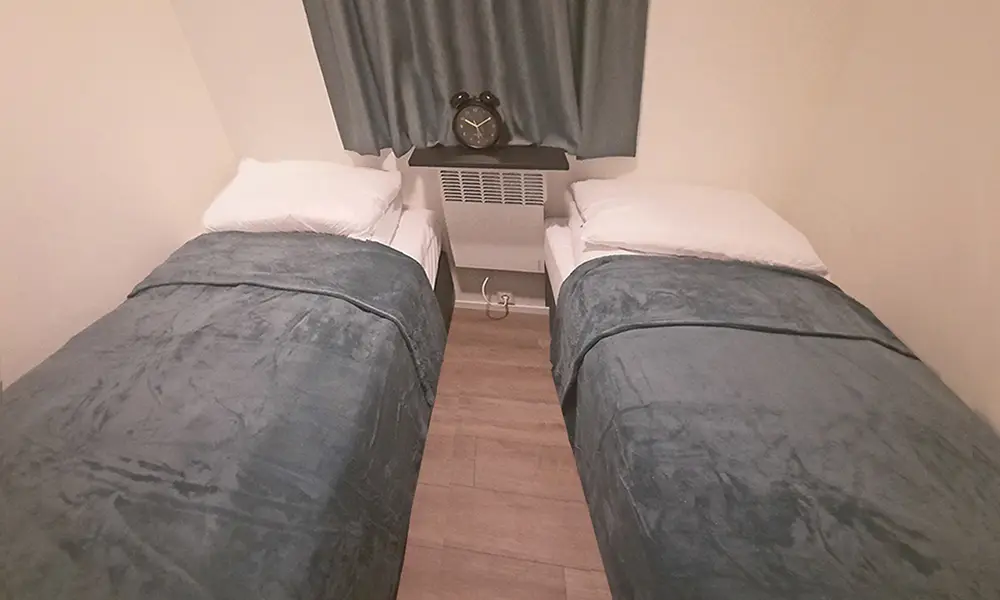 2de slaapkamer voor de kinderen of gasten, met twee boxsprings en kastjes