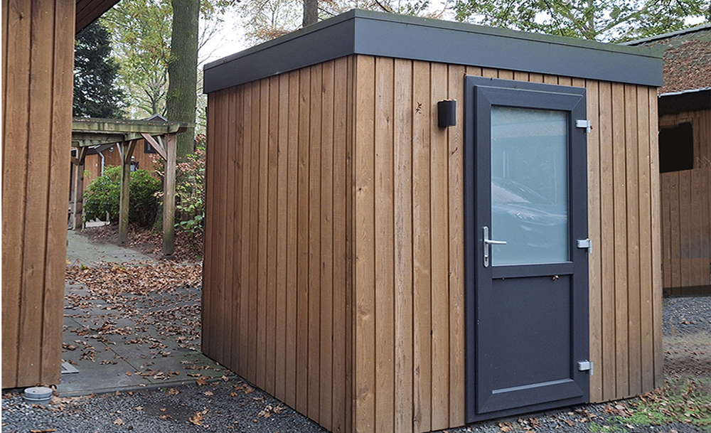 Verder is er een terras met een pergola en een eigen parkeerplaats. Naast het chalet staat een afsluitbare berging voor o.a. de fietsen, gereedschap en andere privé spullen.